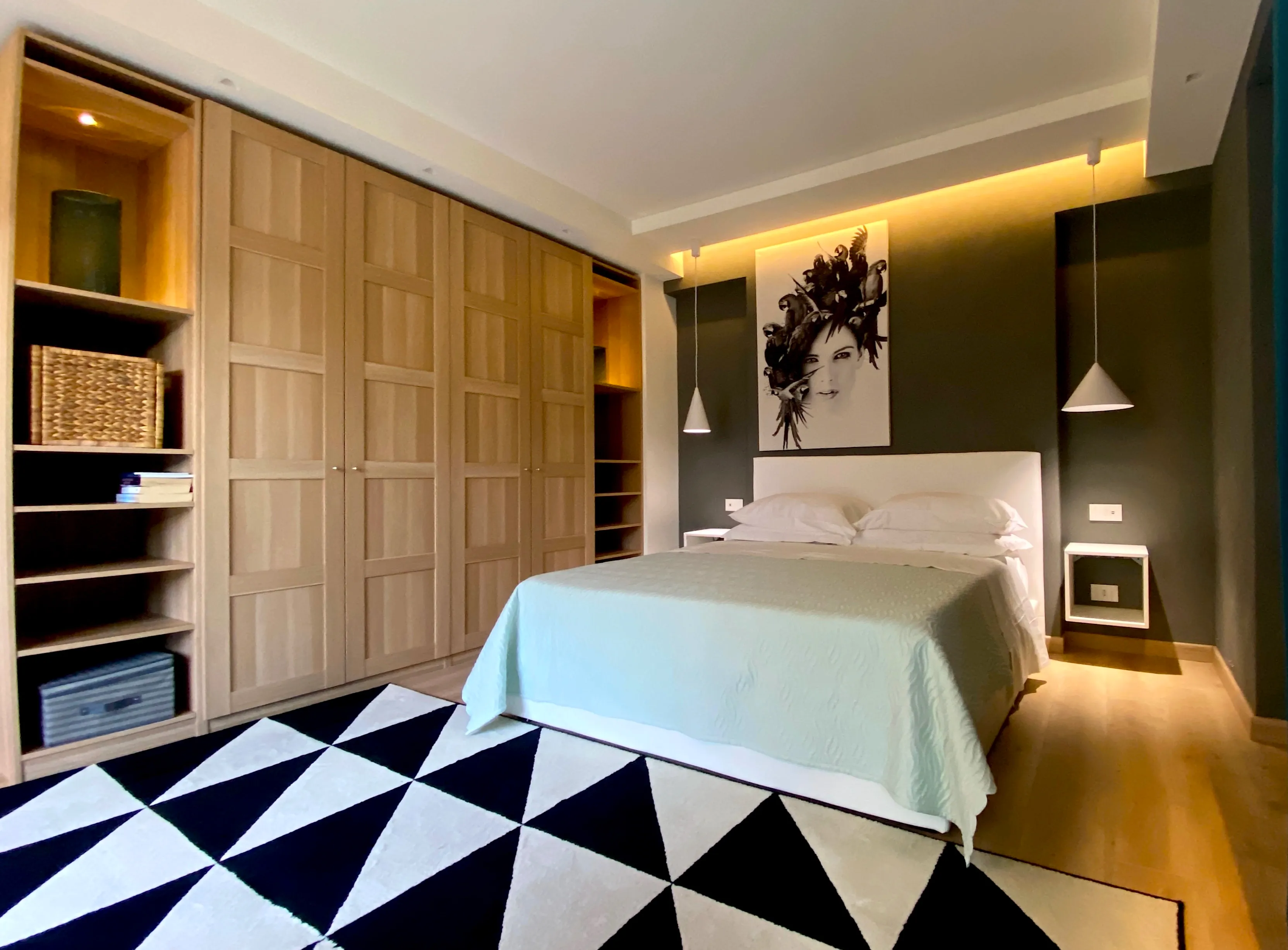 Large, elegant double bedroom with direct access to the outdoor spaces